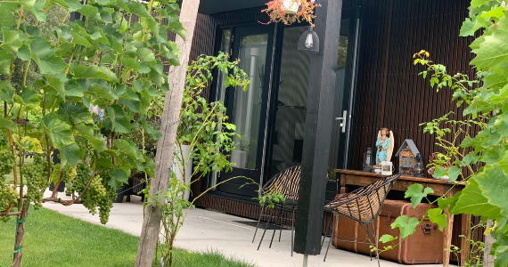Altijd al willen logeren in een wijngaard? Onze boutique B&B's bevinden zich in het midden van onze stadswijngaard naast onze appel- en perenboomgaard